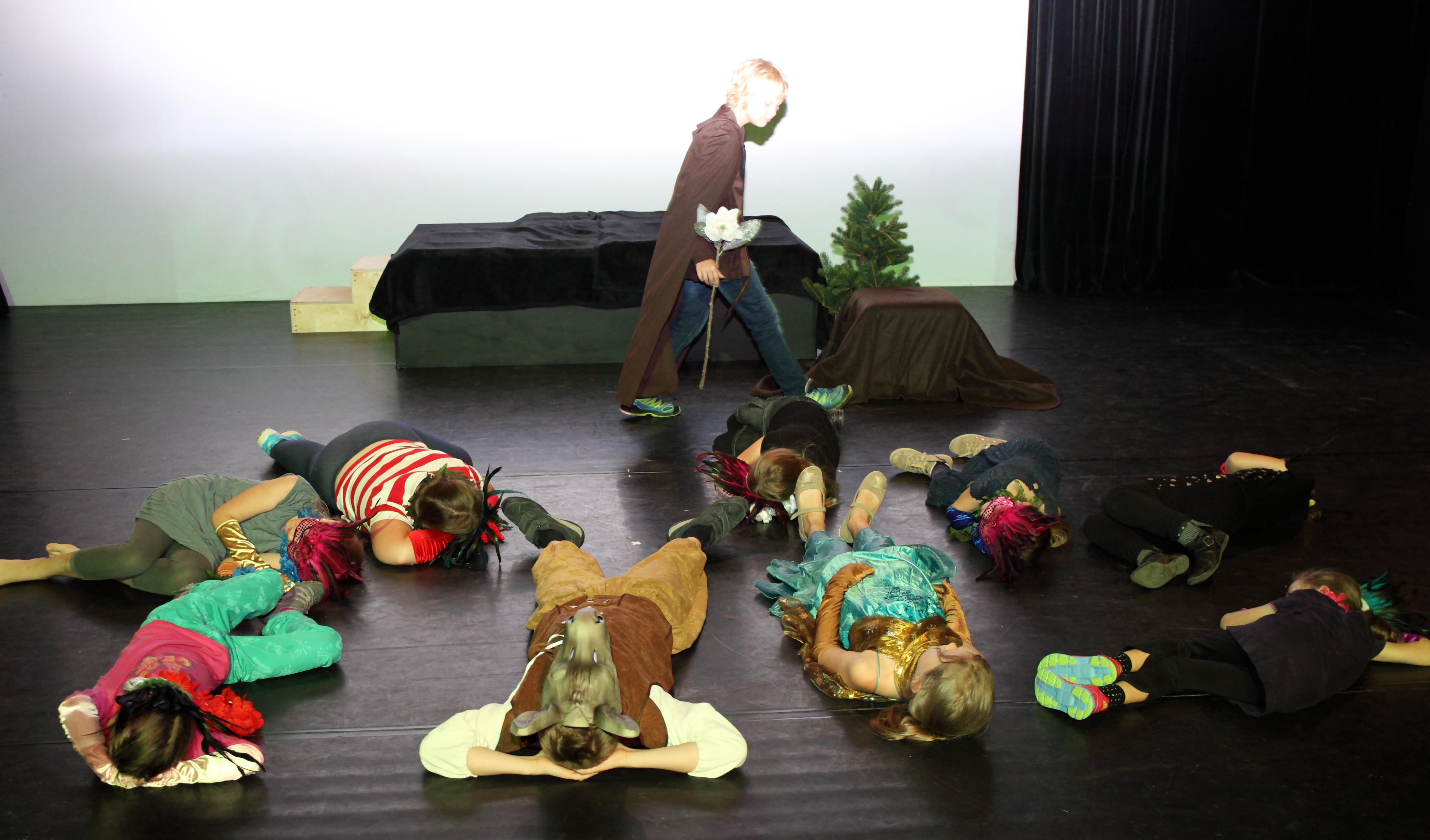 Sophie Strehl (Puck), Grace Kollarsch (Titania), Moritz Weyh